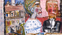 Sie zeigen das Familienleben am Meer oder Liebespaare und am liebsten das Thema „Frau am Strand“, gerne leicht bekleidet und manchmal mit fast grotesk verzerrten Gesichtern, die durch versetzte, verschieden große Collageteile entstehen.